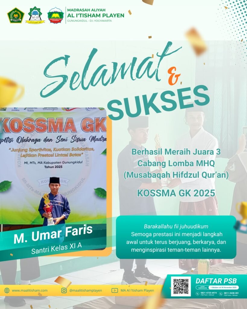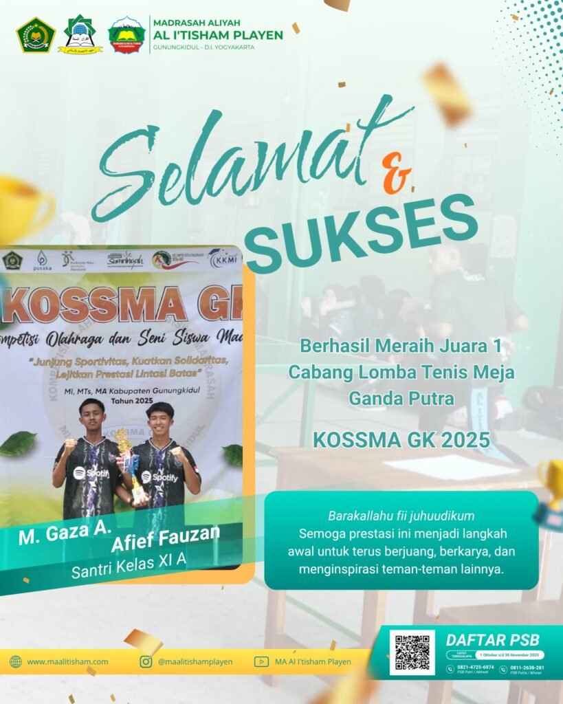 #KOSSMA2025 #MAAlItisham #MadrasahHebat #GunungkidulBerprestasi #MadrasahAliyah #KemenagGunungkidul #MadrasahBermartabat #SiswaBerprestasi
